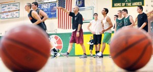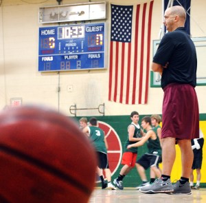 Though both coaches are well-proven, starting from scratch still takes some adjustments. On the first day of practice, the basketball court at Jay wasn’t ready. So that forced a move to the gym at Livermore Falls.