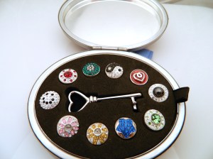 The look can be changed with a simple key inserted into the back of the piece and releasing the topper from its magnetic foundation. A new jewel face can then be dropped into place to create a whole new look. Karisma, like Chamilia, offers a choice of bracelet styles as well as necklace, earrings and choice of ring settings.