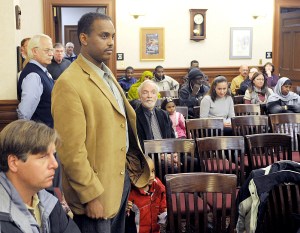 He said he hoped Lewiston professionals would volunteer to help make the city better and he made a pitch for better treatment of veterans.