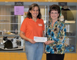 Donna Kincer, left, development director for the Greater Androscoggin Humane Society, receives a check from Allison Dulac, an ING Community Partners Committee Member. The staff at ING, at 1775 Lisbon Road, recently presented the society with the donation of $1,450. The gift was the result of employees giving weekly to a charitable fund and then voting on which nonprofit they would like to present the money to. The society, at 55 Strawberry Ave., provides a safe haven for more than 5,500 sick, homeless and abused animals in the greater Androscoggin area each year. The primary support for the shelter comes from fundraising events and donations of concerned citizens.