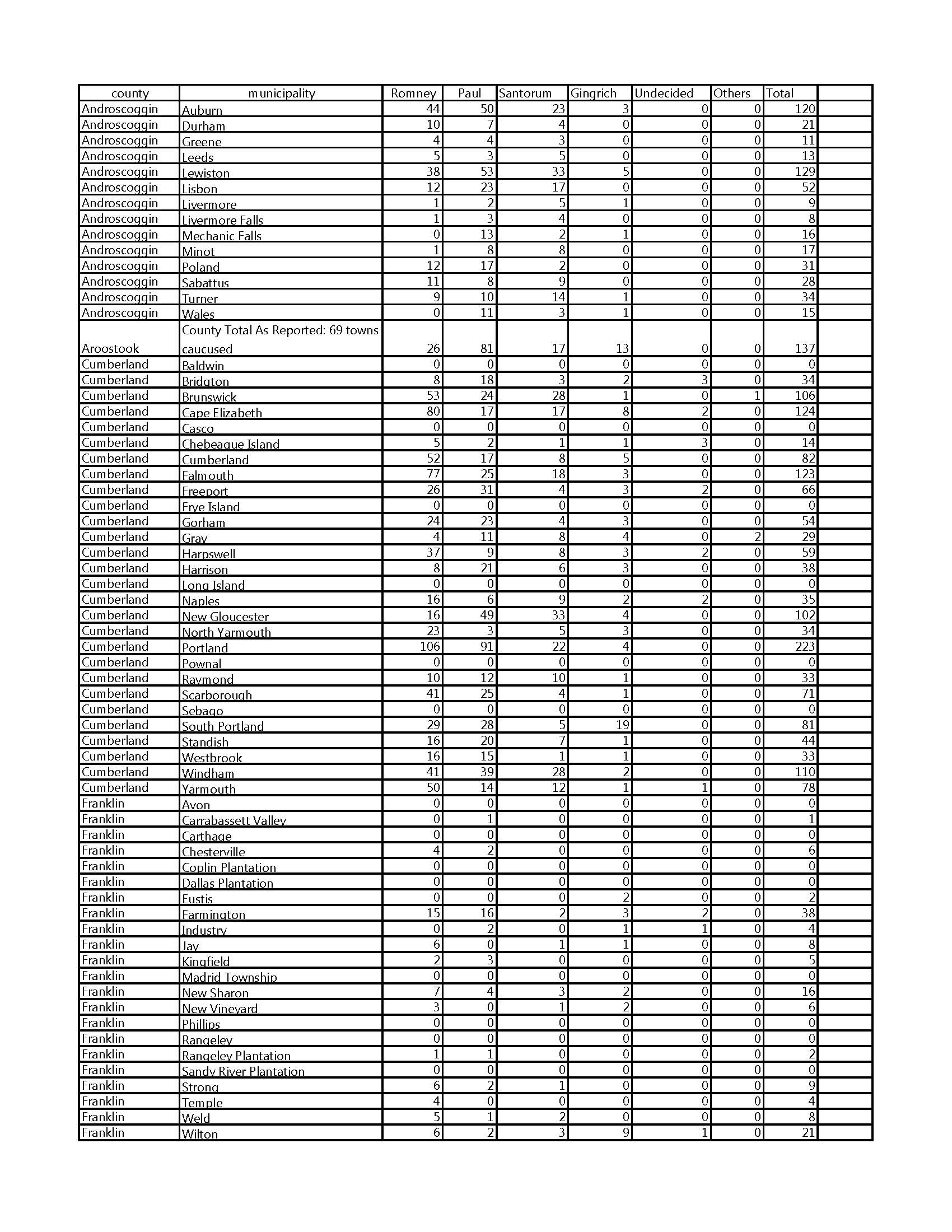 The party decided to recount the votes after determining that votes from caucuses in Waterville, Belfast and a number of other towns were left out of the final results, and that the tallies for Paul and Romney were reversed in Portland.