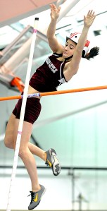 Brunswick Alexis Dickinson captured the 55-meter dash in 7.22 seconds to set a new state record. Multiple winners were Cheverus’ Fiona Hendry, who won both distance races while Sarah Perkins of Gorham won three events. Perkins won the 55-meter hurdles (8.55) and the 400 dash (58.23) before narrowly missing a state mark in the 200 (25.82). In the 200, she had to catch and pass Dickinson at the far turn and held on before collapsing on the track.