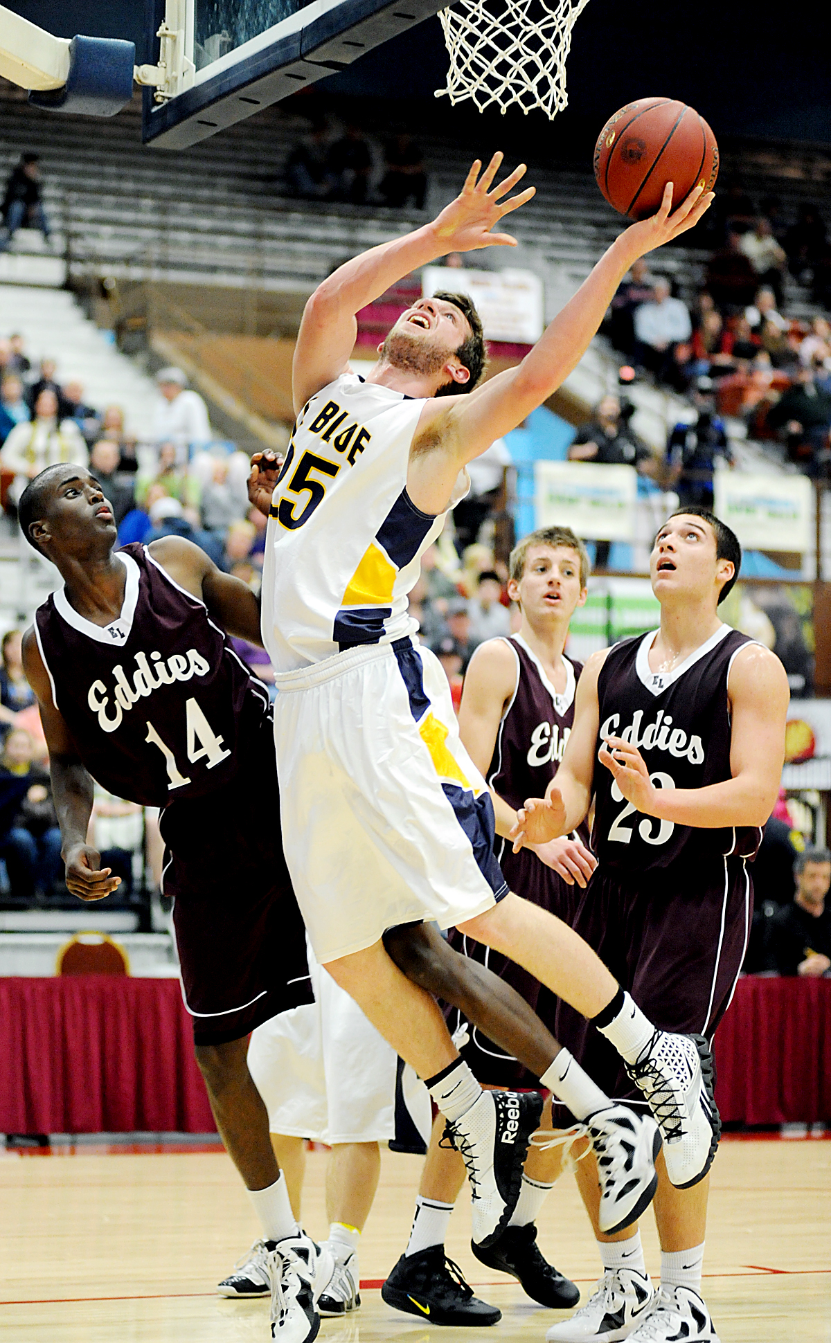 Blake Hart paced Mt. Blue’s balanced offense with 12 points, 10 in the second half. Sennick, dogged all night by Sean Ford and Quin Leary in EL’s shape-shifting defense, finished with 11 points. Eric Berry and Steven Yardley helped pick up the slack with 10 apiece.