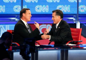 Santorum retorted that government spending declined as a percentage of the economy when he was in the Senate, and he noted that when Romney was asked last year if he would support a pending debt-limit increase, “he said yes.”
