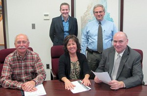 Plans are underway for the fifth annual dinner of the Central Maine Community College Education Foundation. The dinner will be held Wednesday, April 18, at the Hilton Garden Inn/Auburn Riverwatch. Making plans for the event are, seated from left, foundation board members Ron Lebel, Michele Tribou and Dick Gleason along with Kate Dargie, CMCC communications coordinator, and Roger Philippon, dean of planning and public affairs. The annual dinner is a major fundraiser for the foundation’s scholarship fund. Anyone interested in sponsorship opportunities or more information about this event is asked to call Roger Philippon at 755-5357 or email at [email protected]. Information is also available online at www.cmcc.edu.