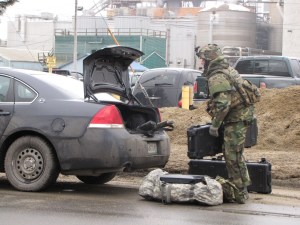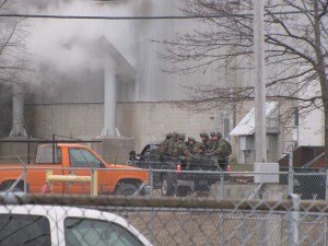 A pickup truck loaded with several police officers in military-like uniforms and carrying assault firearms entered the mill’s front gate at about 10:15 a.m., according to a reporter on the scene.