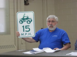 Roland Patneaude, a member of the Roxbury ATV Club, plans to erect signs along the routes that provide the allowable speed limits.