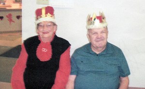 The Meadowview Seniors Complex in Lewiston held the annual Valentine party at the community building recently, including refreshments, karaoke and dancing. Pictured are Valentine Queen Mary Nemick, right, and Valentine King Ray Ouellette. New President Hope Hughes and her committee were in charge.