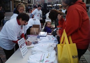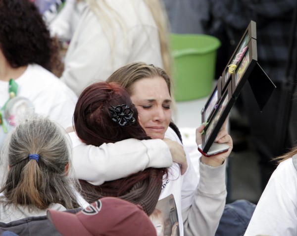 At the vigil, throngs of people crowded around Reynolds, whose pockets would be overflowing if she had a dollar for every hug she gave and received. Family and supporters sold T-shirts, bracelets and buttons, the proceeds of which will be used to make more T-shirts, bracelets and buttons.