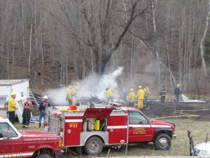 The cause of the fire is uncertain, Strong Fire Deputy Chief Ian Shamp said at the scene. Forest Ranger Mark Rousseau and Shamp were investigating and believed the fire started inside the camper and spread to the wooded area surrounding it.