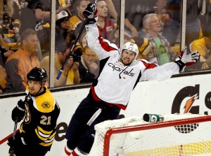 The Bruins rallied with two goals in 28 seconds late in the period to tie at 2. Dennis Seidenberg scored with 2:39 left on a one-timer from the right circle that got past Holtby. And Brad Marchand tied with 2:11 to go when he poked the rebound through Holtby’s legs after a shot from the right point by Boychuk.