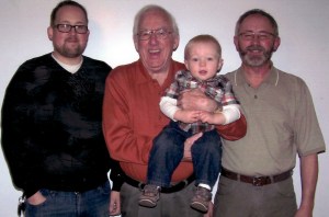 Four generations of a Lewiston family gathered recently. Pictured with the youngest member, Watson Paradis, are, from left, Jonathan Paradis, father; Arthur Paradis, great-grandfather; and Roger Paradis, grandfather.
