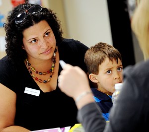In one Sherwood Heights room, little Elliott was being screened for kindergarten. He sat with teachers as they asked him questions and checked his hearing. In another room, his mother sat across a table from Phillips and College for ME staffer Sandi Croft.