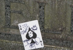 After performing several card tricks beside Elliott’s gravestone, McBride then placed an autographed card beside his name.