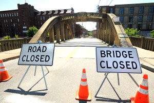 The Wiseman Bridge on Chestnut Street in Lewiston was closed to traffic after a truck got stuck on it Friday.