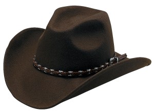 A black cowboy hat with a pretty turquoise-stone band on the rim and you can still roll over it with your horse, tractor or ATV. Wear responsibly.