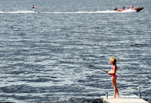 Shauna LeBlanc, 9, of Lewiston tries her luck fishing off the dock of her family’s cottage on Tripp Lake in Poland on Monday afternoon. Shauna LeBlanc, 9, of Lewiston tries her luck fishing off the dock of her family’s cottage on Tripp Lake in Poland on Monday afternoon.