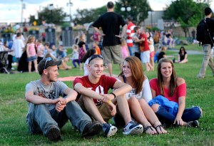 Starting at about dinnertime, people began to appear in Veterans Park along the banks of the Androscoggin River. Most sat on blankets. A few came with lawn chairs and baskets of food.