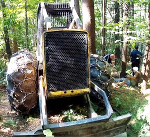LEWISTON — A skidder rolled onto a 61-year-old logger working in the woods near River Road early Wednesday, pinning him to the ground while he yelled for help.