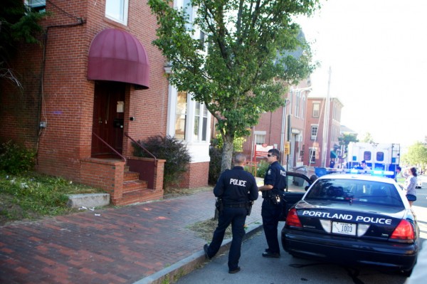 By 8 a.m. Wednesday, India Street was open, but there were several yards worth of blood drops on the sidewalk leading up to Congress Street. Police were gathered outside a brick apartment building at 105/107 India Street.