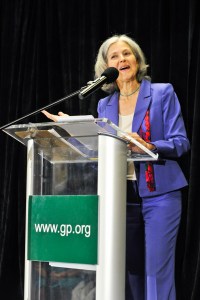 “We need real public servants who listen to the people — not to the corporate lobbyists that funnel campaign checks into the big war chests,” Stein told applauding supporters at a Holiday Inn in Baltimore. “That’s what brought me to the Green Party, the only national party that is not bought and paid for by corporate money.”