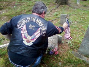 Bernard remembered visiting a cemetery as a boy when he used to go to Tabers. “There is no sign indicating that there is a cemetery there and last I remember the cemetery was in disrepair,” he said. “I don’t remember if there was a veteran there but it would be wise to check.”