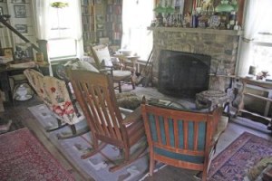 Like the summer home, the Winter House also contains many original items from the Rich’s days there, including a wood stove, a brass bed and a wall papered by Louise with covers from the Saturday Evening Post.