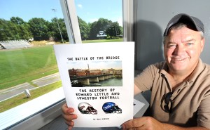 Gibson can smile broadly at the result, a bound, yearbook-style publication of 146 pages entitled, “The Battle of the Bridge: The History of Edward Little and Lewiston Football.”