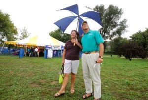 LEWISTON — As the rain cleared Thursday night, the crowd under the giant, yellow-and-white tent in Simard/Payne Memorial Park ate and chatted and reconnected.