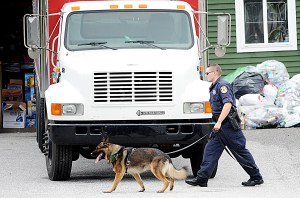 A search involving a police dog and multiple police officers did not locate the men, but some of the property the suspects dropped was recovered.