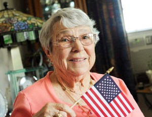 LEWISTON — There’s a little U.S. flag in Justine Duteau’s dining room that carries a big meaning for her. After living here for 85 years, the Canadian-born grandmother got the flag when she was sworn in as a U.S. citizen.