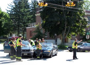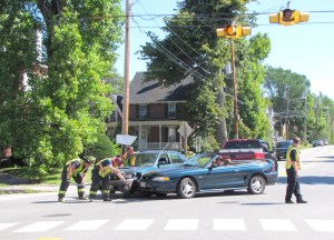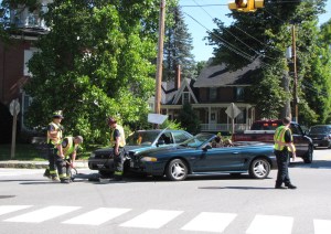 Patricia Crandall, 55, was traveling north on High Street in a 1995 Ford Mustang about 10:30 a.m. Monday and went through the stop sign at a low speed, Farmington police officer Mike Raymond said.