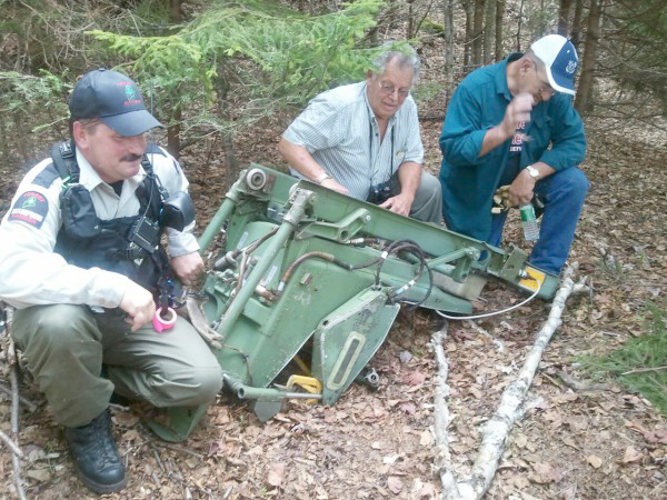 Crash wreckage remains strewn through the area. Maine Forest Service Ranger Sgt. Bruce Reed found the ejection seat while hunting last fall. It was outside the approximately 1½-mile no-salvage and no-harvesting zone created by Scott Paper years ago and maintained today by Plum Creek. Pratt and a group of rangers retrieved the seat on May 24.