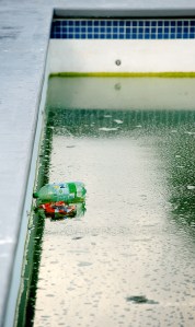 Not only is the pool’s condition an eyesore, it’s dangerous. If someone jumped the gate and dropped beneath the surface, no one would could see that person from the outside.