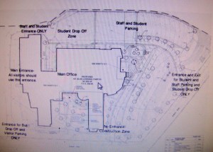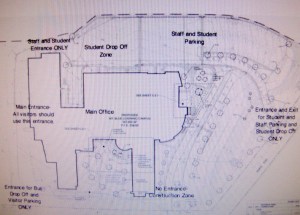 Students and teachers will drive in from Seamon Road and park as they did last year and enter a staff and student entrance west of the parking area.