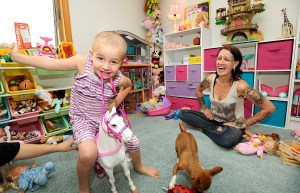WOODSTOCK — Danika DeMayo loves to play. Letting rip with a squeal of laughter, the energetic 5-year-old takes off running from the studio of her parent’s Woodstock home to show off her bedroom and playroom to visitors.
