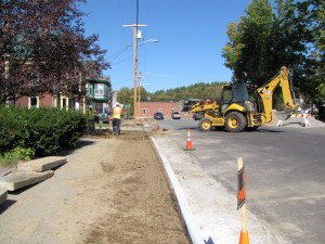 Curbing and sidewalk improvements continued Tuesday on Pleasant and Front streets in Farmington from behind Meetinghouse Park to the entrance of Narrow Gauge Cinema. The project is funded by a Community Development Block Grant.