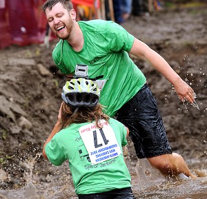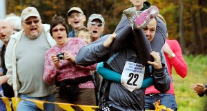 But in the end, defending World Champions Taisto Miettinen and Kristina Haapanen, who traveled from Helsinki, Finland — home of the World Wife Carrying Championships came out on top with a time of 52.58 seconds.