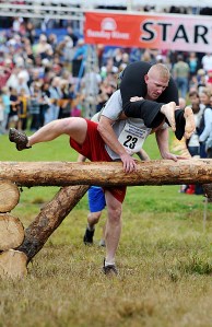 The prize, besides a check for $530 and some trophies crafted to look like the timber hurdles, is the winning woman’s weight in beer.