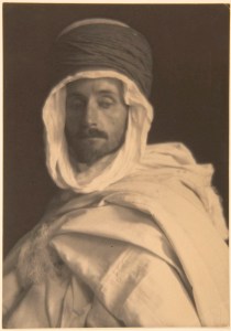 This 1901 platinum print of F. Holland Day in Algerian costume was taken by Frederick Henry Evans.