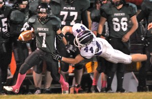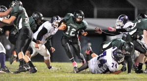 Spruce Mountain came to life when quarterback Peter Theriault threw a catch-and-run 37-yard touchdown pass up the right sideline to Matt Vigue to trail 27-12 with 3:31 left in the game. Austin Schmidt recovered the onside kick, but couldn’t move the ball and turned it over on downs.