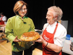 Her pie, along with a truckload of household cooking gear, groceries and gift certificates, was given away to one of the 800 people that crowded the middle school auditorium to see how the apple pie and nine other desserts, entrees and salads were made.