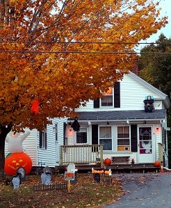 And when the sun goes down on this town on cool October nights, house after house lights up, aglow with skeletons, spiders, witches and webs.