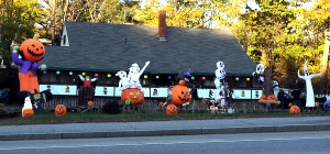 On Route 196, just outside of the downtown area, is a home with seven or more giant Halloween blow-ups, ghosts galore, a giant spider, skulls and too many hanging and lawn pumpkins to count.