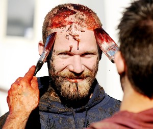 Cheers accompanied by several grunts rose in the crisp air when Assistant Director P. Seth Roberts congratulated the gruesome bunch on a great take.
