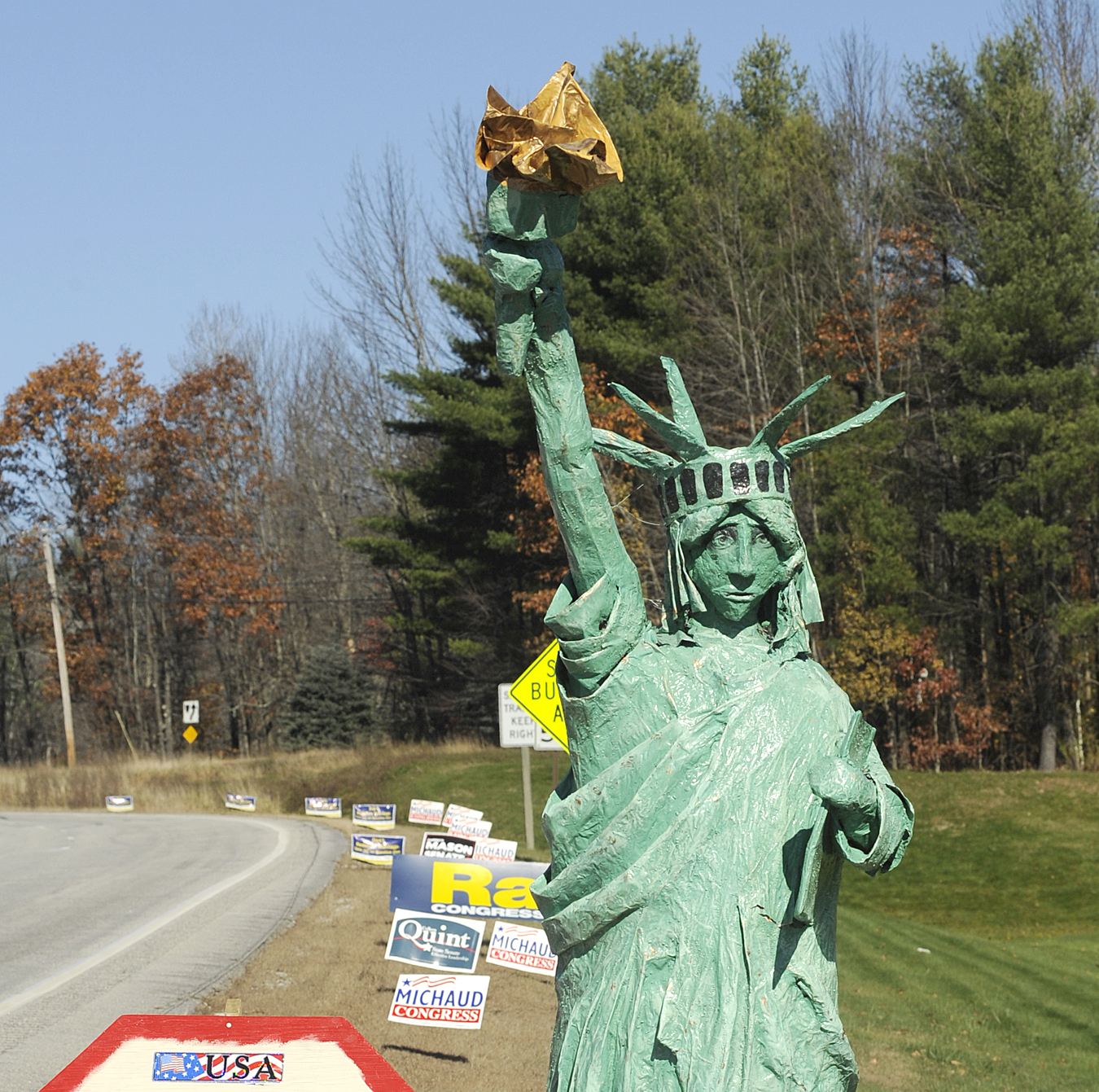 But Allen Parker told the Sun Journal on Saturday he was not responsible for the recent disappearance of a 9-foot, papier-mache Statue of Liberty accompanying “No on 1” signs in the same area.
