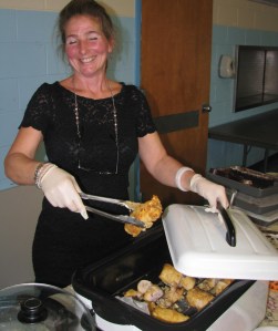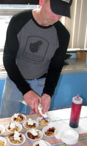 The Crosstone Restaurant from the Mollyockett Motel in Woodstock brought chicken cordon bleu and ultimate chocolate cake; Erin’s Cafe served gluten-free fish chowder, raw carrot-apple juice and chocolate chip cookies; The Sudbury Inn brought their award-winning Maine clam chowder; The Good Food Store brought butternut squash lasagna, mac and cheese with ham and ginger apple crisps; Smokin’ Good BBQ served pulled pork, coleslaw and cornbread; and Dunkin’ Donuts brought doughnuts and coffee.