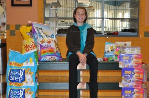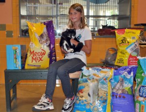 On Sept. 11, Alexandra Hawksley of Turner presented the shelter with the donations from her 10th birthday party. Alexandra, a fifth-grade student at Turner Elementary School, asked for donations in lieu of birthday gifts. Party guests donated pet food, treats and funds.