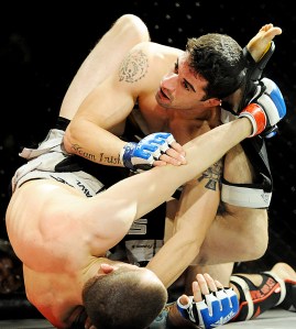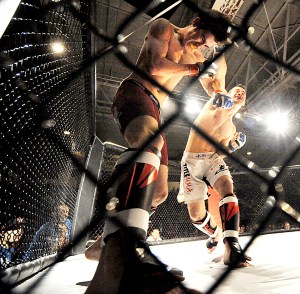 And John Ortolani, a professional lacrosse player with the Rochester Rattlers from Billerica, Mass., scored a rear naked choke tapout of Brewer’s Bruce Boyington in a 155-pound battle. Ortolani (7-6) used his upper body strength to take early control, pinning Boyin to the cage until he could position Boyington (3-5) for the submission move.