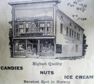 Fletcher’s Candy Store — known as the “Sweetest Spot in Norway” — was started in 1903 by John H. Fletcher on Main Street and was known for decades for its handmade candy, especially candy canes and ribbon candy at Christmastime and a variety of penny candy, said Anita Hamilton, president of the Norway Historical Society.